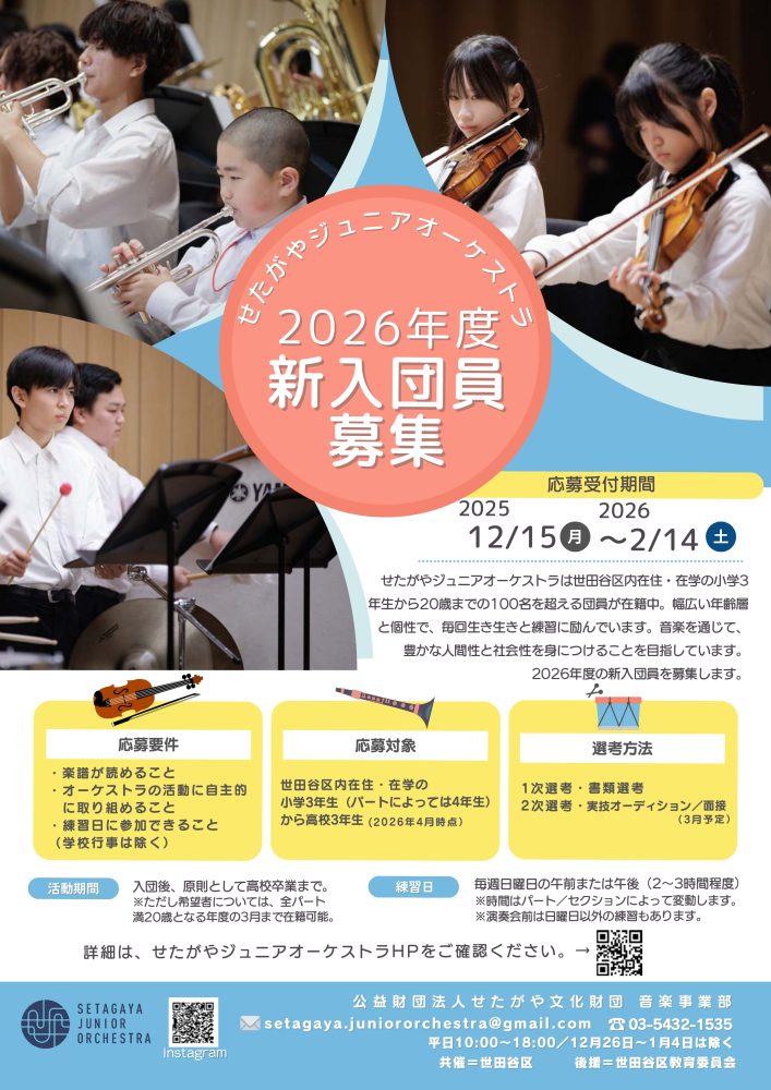 2025年度せたがやジュニアオーケストラ 団員追加募集!【終了しています】